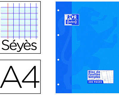 BLOC COURS OXFORD A4 ENCOLLÉ FEUILLES DÉTACHABLES 210X290MM100F 90G SÉYÈS 4 TROUS