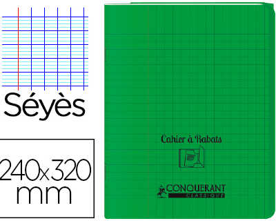 CAHIER À RABAT AGRAFÉ CONQUÉRANT CLASSIQUE COUVERTURE POLYPROPYLÈNE 24X32CM 96 PAGES 90G SÉYÈS COLORIS VERT Soit : 2,7 € HT l'unité UMV : 10