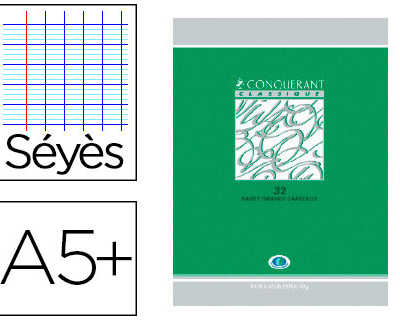 CAHIER DEVOIRS PIQUA CONQUARAN T CLASSIQUE COUVERTURE VERNIE CARTE COUCHAE A5+ 17X22CM 48 PAGES 90G SAYES Soit : 0,51 € HT l'unité UMV : 20