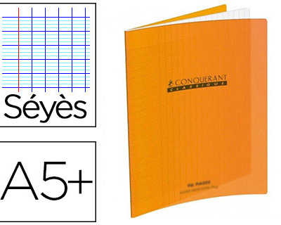 CAHIER PIQUA CONQUARANT CLASSI QUE COUVERTURE POLYPROPYLENE RIGIDE TRANSPARENTE A5+ 17X22CM 48 PAGES 90G SAYES ORANGE Soit : 0,74 € HT l'unité UMV : 10