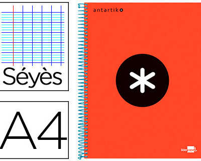 CAHIER SPIRALE LIDERPAPEL SÉRI E ANTARTIK A4 SÉYÈS COUVERTURE REMBORDÉE 120F 100G MICRO-PERFORÉES 5 BANDES 4 TROUS ROUGE