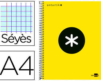 CAHIER SPIRALE LIDERPAPEL SÉRI E ANTARTIK A4 SÉYÈS COUVERTURE REMBORDÉE 120F 100G MICRO-PERFORÉES 5 BANDES 4 TROUS JAUNE
