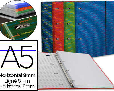 CLASSEUR LIDERPAPEL SÉRIE MULTILIDER 4 ANNEAUX RONDS 20MM CARTON A5 148X210MM 120F 5 BANDES COULEURS LIGNÉ HORIZONTAL
