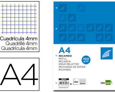 Original FEUILLET MOBILE LIDERPAPEL A4 210X297MM 100F 100G 5X5MM TRÈS RÉSISTANT PERFORÉ 4 TROUS BANDES 5 COULEURS