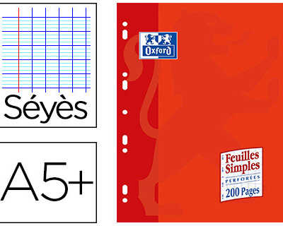 FEUILLET MOBILE OXFORD A5+ 170 X220MM PAPIER SATINA EXTRA BLANC 200 PAGES 90G SAYES PERFORA Soit : 4,08 € HT l'unité UMV : 5