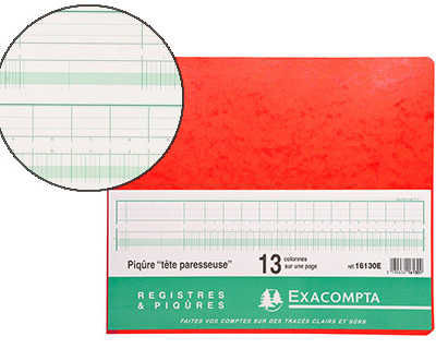 MANIFOLD PIQÛRE EXACOMPTA 320X 270MM 31 LIGNES 80 PAGES COMPTABLE TÊTE PARESSEUSE 13 COLONNES/PAGE