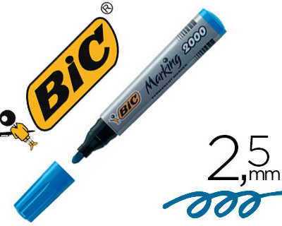 MARQUEUR BIC PERMANENT MARKING 2000 POINTE OGIVE TRACA 2.5MM CORPS PLASTIQUE ENCRE BASE ALCOOL COLORIS BLEU Soit : 0,86 € HT l'unité UMV : 12