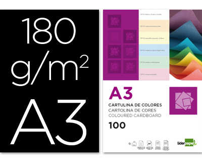 Original PAPIER CARTONNÉ LIDERPAPEL A3 180G/M2 UNICOLORE NOIR PAQUET 100F