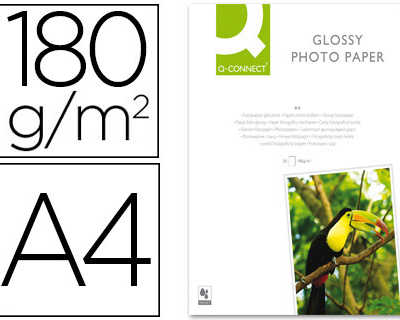 PAPIER PHOTO Q-CONNECT JET D'E NCRE SEMI-GLACA BRILLANT A4 180G/M2 COMPATIBLE TOUTE IMPRIMANTE PAQUET 20 FEUILLES