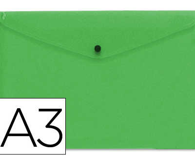 Original POCHETTE ENVELOPPE LIDERPAPEL POLYPROPYLENE 180 MICRONS A3 420X297MM 50F FERMETURE BOUTON RASISTANT TRANSPARENT VERT