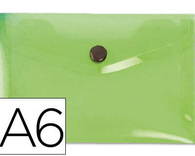 Original POCHETTE ENVELOPPE LIDERPAPEL POLYPROPYLENE 180 MICRONS A6 148X105MM 50F FERMETURE BOUTON TRANSPARENT FROSTY VERT