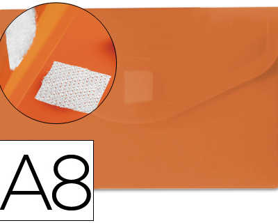 POCHETTE ENVELOPPE POLYPROPYLÈ NE LIDERPAPEL A8 74X52MM 180 MICRONS FERMETURE BOUTON RÉSISTANT TRANSPARENT ORANGE