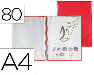 Original PROTÈGE-DOCUMENTS LIDERPAPEL POLYPROPYLÈNE COUVERTURE RIGIDE SPIRALE 80 POCHETTES FIXES A4 210X297MM COLORIS ROUGE