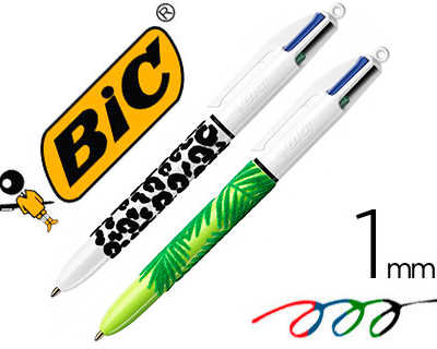 STYLO-BILLE BIC 4 COULEURS JUNGLE ET TROPICAL POINTE MOYENNE 1MM RÉTRACTABLE RECHARGEABLE