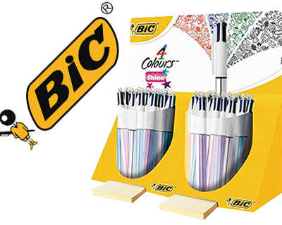 STYLO-BILLE BIC 4 COULEURS SHINE SILVER ROSE VIOLET BLEU PRÉSENTOIR TUBO 40 UNITÉS