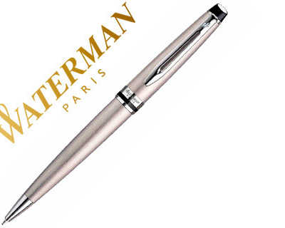 STYLO-BILLE WATERMAN EXPERT AC IER CHROMÉ POINTE MOYENNE BOUTON PRESSOIR BILLE INDÉFORMABLE ENCRE COULEUR BLEU ÉCRIN
